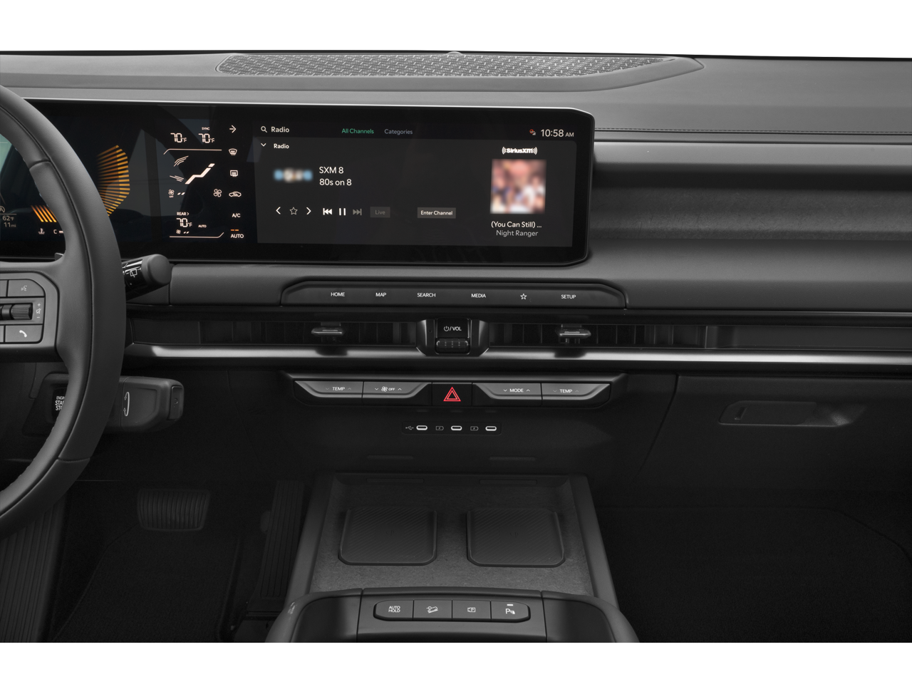 - Radio: AM/FM Display Audio System -inc: 12.3" center infotainment w/navigation, wireless Apple CarPlay and Android Auto, SiriusXM, Bluetooth® w/voice recognition, 8 SoundHound speakers, passenger talk, Wi-Fi hotspot, Kia Connect, Over-the-Air update capability and 1 data USB-C port in front row