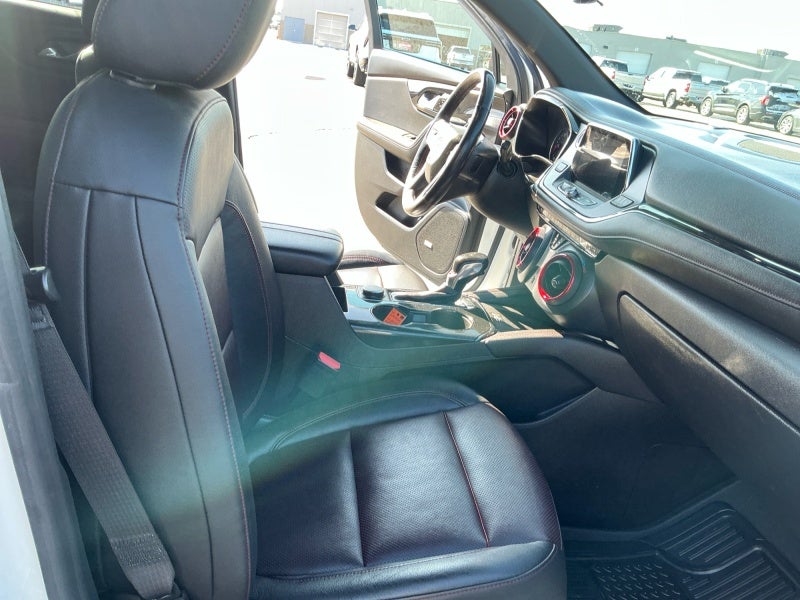 2019 Chevrolet Blazer RS — White exterior, Jet Black leather interior. One-owner, well-equipped used SUV with 125,230 miles and a powerful 3.6L V6 paired to a 9-speed automatic for smooth, confident highway passing and everyday driving. Comfort & convenience: - Ventilated front seats and heated rear outboard seats for all-season comfort - Driver’s seat memory and power tilt/telescoping steering column - Wireless charging and Chevrolet Infotainment 3 Premium with Navigation - Bose premium 8-speaker audio for excellent cabin sound Performance & drivetrain: - ENGINE: 3.6L V6 SIDI DOHC with Variable Valve Timing (VVT) - Transmission: 9-speed automatic, electronically controlled - Front-wheel drive for efficient, predictable handling Advanced safety & driver assistance: - Adaptive Cruise Control (Advanced) with Following Distance Indicator - Forward Collision Alert, Forward Automatic Braking, Front Pedestrian Braking - Lane Keep Assist with Lane Departure Warning and Lane Departure Warning - HD Surround Vision and Rear Camera Mirror - Collision Avoidance System and Safety Alert Seat for added situational awareness Styling & features: - RS appearance with athletic stance and premium interior materials - Memory settings, IntelliBeam headlamps, and front license plate mount package This Blazer RS pairs strong V6 performance with a loaded safety and tech package, delivering a comfortable, connected ride for commuting and road trips. Contact us to schedule a test drive and see why this one-owner Blazer is a standout in its class.