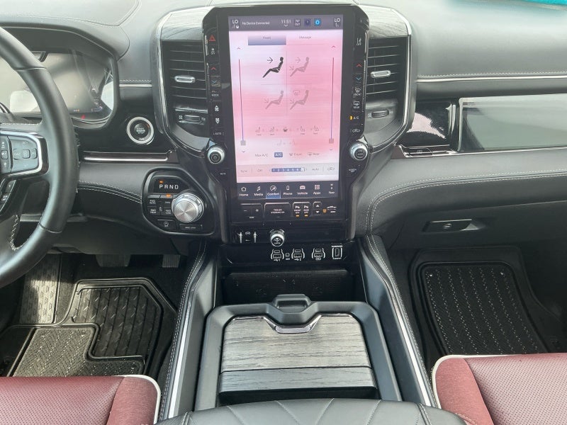 Introducing a stunning 2025 Ram 1500 Limited, an exceptional vehicle that combines premium luxury with robust performance. This used beauty has been meticulously maintained and has only 7,443 miles on it, showcasing its lightly used status. Perfect for those seeking a powerful and capable ride, this Ram 1500 flaunts a vibrant red exterior that beautifully complements its sophisticated Red/Black/Ebony leather interior. Dive into unparalleled comfort with power driver's seat and cooled front leather seats, ensuring you're ready for long journeys or short commutes in any season. The Limited trim offers a superior driving experience, boasting a suite of advanced options like the Technology Package, which features the state-of-the-art RADIO: UCONNECT 5 NAV with a stunning 14.4" display for all your navigation and entertainment needs. Equipped with a formidable 3.0L I6 Hurricane HO Twin Turbo ESS engine and paired with an 8-speed automatic transmission, this truck delivers a thrilling performance on every drive. The 4WD system, along with air suspension and locking/limited slip differential, ensures you can tackle any terrain with confidence, while the Trailer Tow Group and Trailer Brake Control make hauling heavy loads a breeze. Stand out with aluminum/alloy wheels and a bed liner that provides added protection and durability. The stylish dual-pane panoramic sunroof fills the cabin with natural light, adding to the open, luxurious feel of the interior. Practical features like power running boards, fog lights, and an engine block heater enhance functionality, while safety is paramount thanks to the E-Locker rear axle and front license plate bracket. This one-owner truck, complete with the Limited Level A Equipment Group, also boasts the Bed Utility Group for optimal cargo management. Whether you're hitting the road for work or play, this Ram 1500 Limited is equipped to elevate your driving experience to new heights. Don’t miss out on the opportunity to own this outstanding vehicle that is both a powerhouse and a showcase o